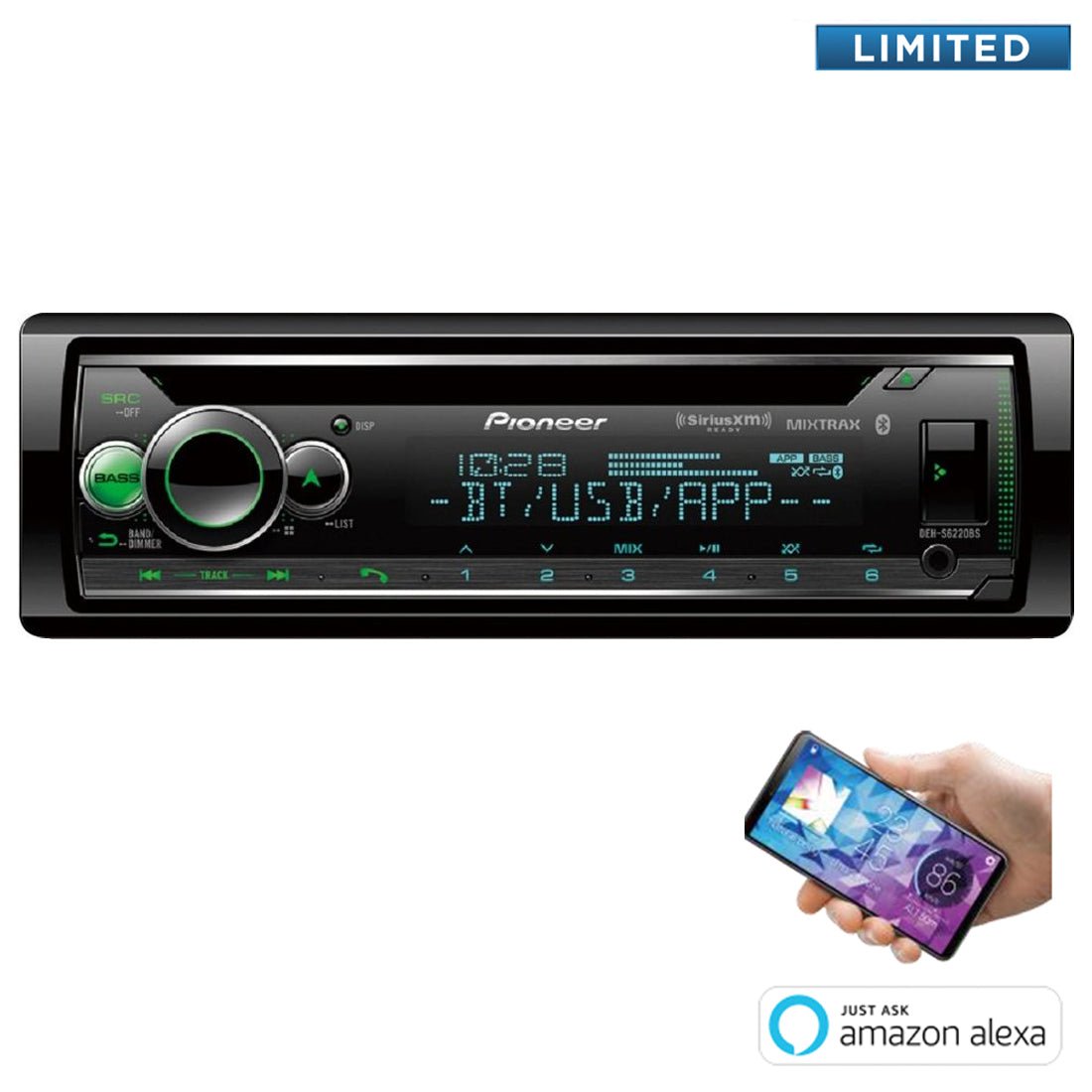 Pioneer DEH-S6220BS 1-DIN In-Dash CD/DM and Bluetooth Receiver – SiriusXM Ready